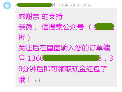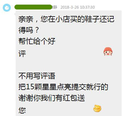 今天店家客服找我,說是好評(píng)了有紅包,信息如下: