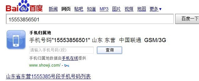 15553856501這個(gè)手機(jī)號(hào),我也用百度查詢了,信息如下: