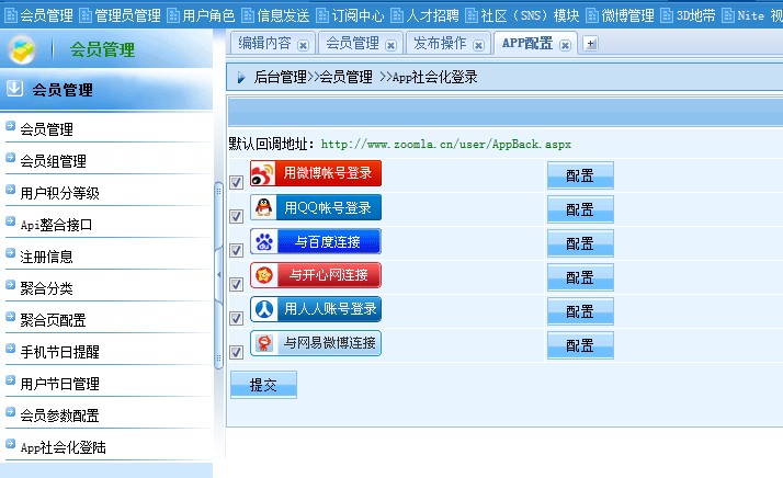 全新集成新浪微博、百度、QQ互聯(lián)、網(wǎng)易、人人、開(kāi)心六大網(wǎng)站社會(huì)化登陸, 為站點(diǎn)贏得更多流量與會(huì)員, 提升網(wǎng)站會(huì)員粘度。 同時(shí)全面做化URL路徑, 支持更多的格式生成, 面向HTML、SHTML、短路徑生成, 使SEO與收錄效果更佳, 即使是默認(rèn)動(dòng)態(tài)頁(yè)面, 也以短路徑類(lèi)靜態(tài)模式呈現(xiàn), 一切為了站長(zhǎng),一站面向優(yōu)化, 最優(yōu)網(wǎng)站,選擇最優(yōu)Zoomla!逐浪CMS! 歡迎廣大站長(zhǎng)用戶(hù)下載體驗(yàn),免費(fèi)在線(xiàn)體驗(yàn): 前臺(tái):http://demo.zoomla.cn 后臺(tái):http://demo.zoomla.cn/manage 用戶(hù)名:admin 密碼:admin888 |