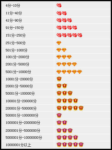 作為買(mǎi)家的角色,其信用度分為以下20個(gè)級(jí)別 :