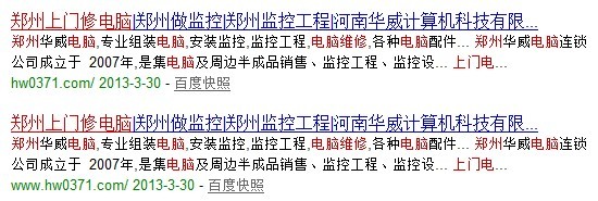 今天無(wú)意中發(fā)現(xiàn),用百度搜索一個(gè)關(guān)鍵詞,同一頁(yè),同一個(gè)網(wǎng)站,居然有兩個(gè)快照。