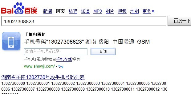 今天凌晨1點(diǎn)41分,13027308823這個(gè)手機(jī)號(hào),給我打電話,響一聲就掛,我用百度查了一下,13027308823這個(gè)手機(jī)號(hào)的歸屬地信息是: